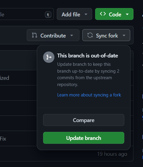 fork 방식 협업에서 Develop에 업데이트 사항이 추가될 경우 바로 바로 Sync fork-Update branch로 변경사항을 받아와야 하고,